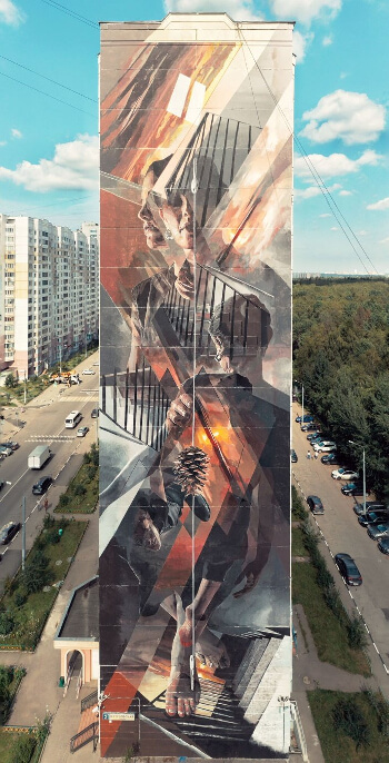L’artiste Vesod a récemment peint une fresque murale massive pour le festival Urban Morphogenesis (Moscou) au Street Art Festival (Grenoble).